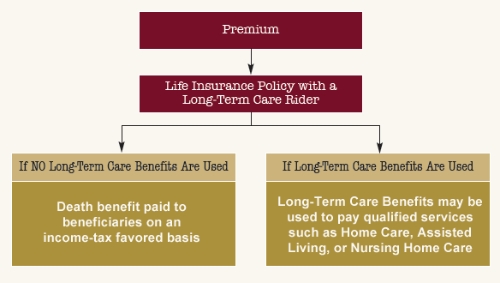 An alternative to traditional LTC insurance. Hybrid or linked benefit products also called "asset-based" mean there is a base product such as universal or whole life insurance or an annuity that provides long term care benefits if needed. Hybrid policies are regulated by your state's department of insurance. Not all products are available in all states. Your HealthThe healthier you are the more and better choices you have. If you can pass a health screening then you may be eligible for either a hybrid life insurance with a long term care rider or a hybrid annuity with a long term care rider. Life/LTC or Annuity/LTC - with underwritingWith underwritten linked-benefit products you will be getting "X" times your initial premium in long term benefits. With the hybrid life policy you also have a death benefit, your heirs will receive any unused death benefit tax free. Life Insurance with Long Term Care